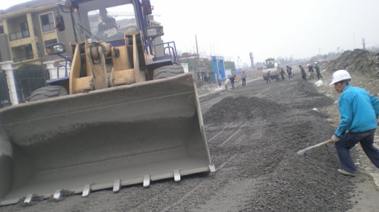 朗河北路路基找平施工